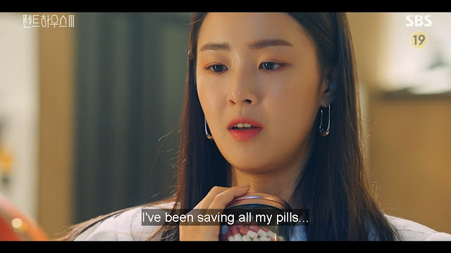 There are so many things that's unfolding in this episode but my main concern had always been on Bae Ro Na. Somehow, The Penthouse tells us that it is always the kindest people, that's suffering in the world where greedy and powerful people reign. Sigh. And that part wherein Bae Ro Na was blaming herself and her mother's kindness for helping other people? That it's their heart/kindness that's the reason why Oh Yoon Hee died? That's so heartbreaking because it's so wrong! Anyways, I don't think I could move on from Oh Yoon Hee's death but I think that's really it for her character, she's one of the main key that could bring Joo Dan Tae and Cheon Seo Jin down.